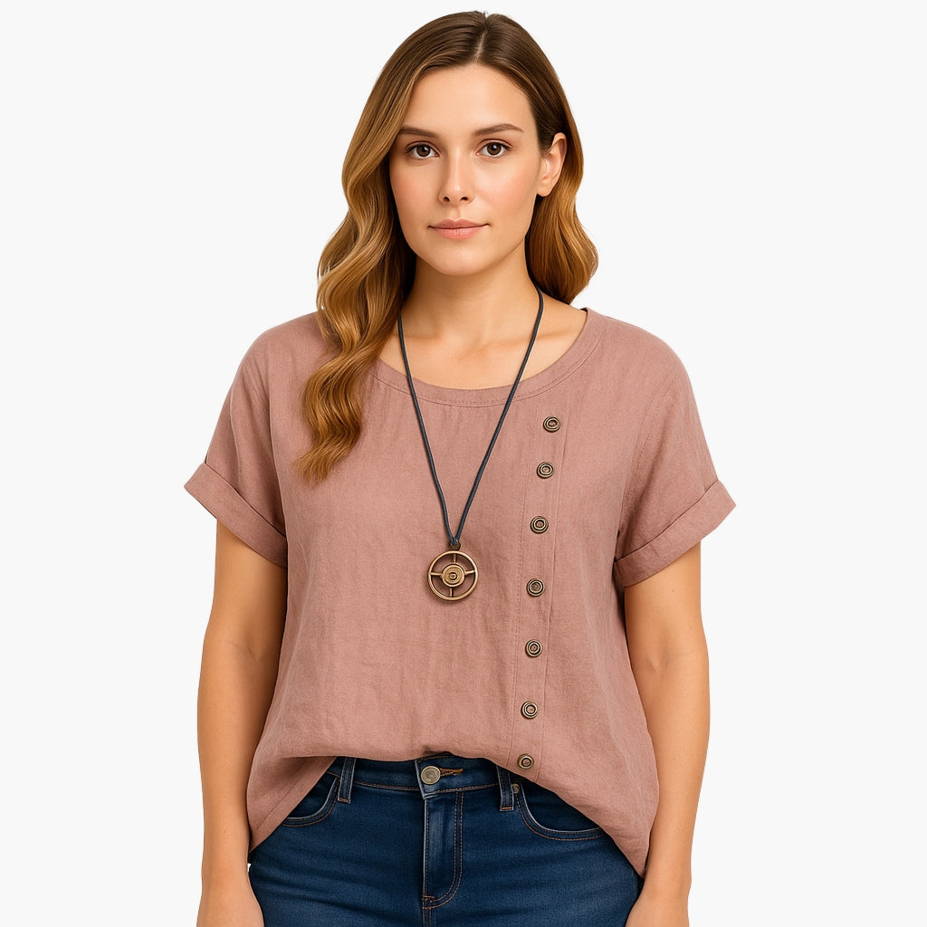 Experience the perfect blend of comfort and style with this chic short-sleeve blouse. Designed for versatility, its button-down feature and classic round neckline make it suitable for various occasions, ensuring you feel confident whether exploring the city or enjoying a casual outing with loved ones.